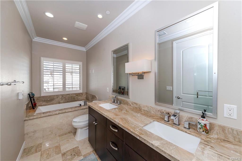 Stunning like new PUD in distinguished Temple City school district. Beautiful free standing home with Mediterranean influence. Spacious and bright with high ceilings, refined designer paint and recessed lights throughout the home. One bedroom suite downstairs makes it perfect for in-laws or guests and three bedrooms upstairs. All rooms feature high end building materials: stainless steel appliances, contemporary cabinets, Caesar stone countertops at kitchen, precast fireplace mantles, electronic ignition gas fireplace, pre-wired security system, rich hardwoods downstairs and upstairs, plush carpeting stairs, 8 ft doors, master suite with huge walk-in closet and private master bath with jacuzzi tub, private cozy backyard, 2 car attached garage + guest parking. Convenient location with walking distance to all amenities such as restaurants, shops, bank, and yet situated on a street without major traffic. Must see to appreciate.